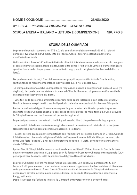 Finire i compiti del mese di marzo e inviarli agli insegnanti.
