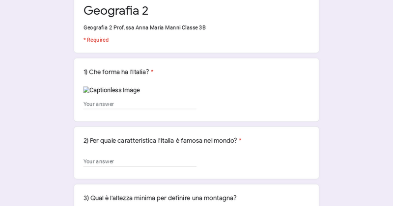 GEOGRAFIA 1 Prof.ssa MANNI ANNA MARIA 3A